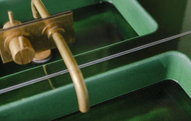 The Basins collection features unique sinks for kitchen and bathroom, crafted from solid lavastone or stoneware. Durable, exclusive materials that are hand-finished and glazed. The glazed surface adds depth, colour variation, and a ceramic feel, while remaining easy to clean and maintain. Stoneware basins are available in various styles and sizes, whereas lavastone basins can be customized to fit any project. Lavastone basins can be integrated as part of a solid lavastone countertop or as an individual element, either undermounted or topmounted according to your needs.